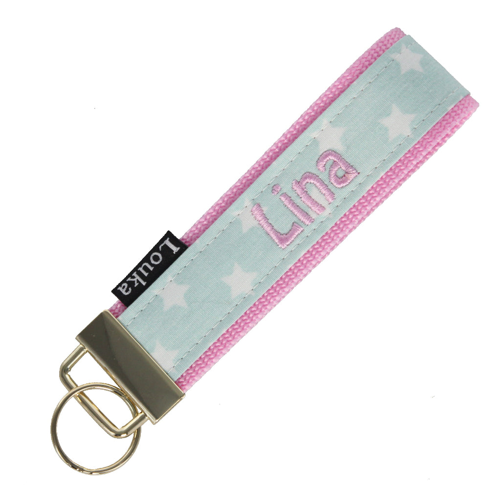 Ideaal voor autosleutels, huissleutels of je tas. Door de lichte kleuren en de geborduurde naam vind je je sleutels snel terug.